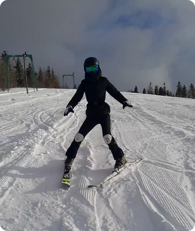 - Відпрацювання техніки поворотів, зупинок, катання на різних схилах.