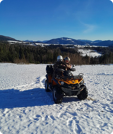Квадроцикл у снігу — це зовсім інший рівень вражень! Подорож засніженими лісами та гірськими стежками, коли кожен поворот відкриває нові краєвиди, а навколо панує справжня зимова казка. Під час маршруту ви зможете зупинитися у наймальовничіших місцях, зробити фото та насолодитися тишею карпатських гір. І навіть якщо ви не маєте досвіду керування квадроциклом — це не проблема. Інструктор навчить вас основам і подбає про безпеку, щоб ваша зимова пригода була не лише екстремальною, а й комфортною.